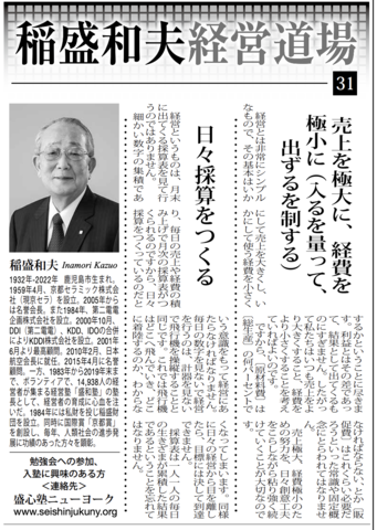 今回は第31回「売上を極大に」「経費を極小に」(入るを量って、出ずるを制する)